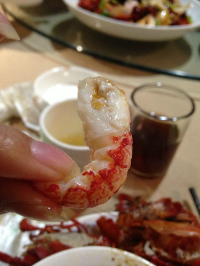 去壳后 可以看见整个的龙虾肉 非常紧实