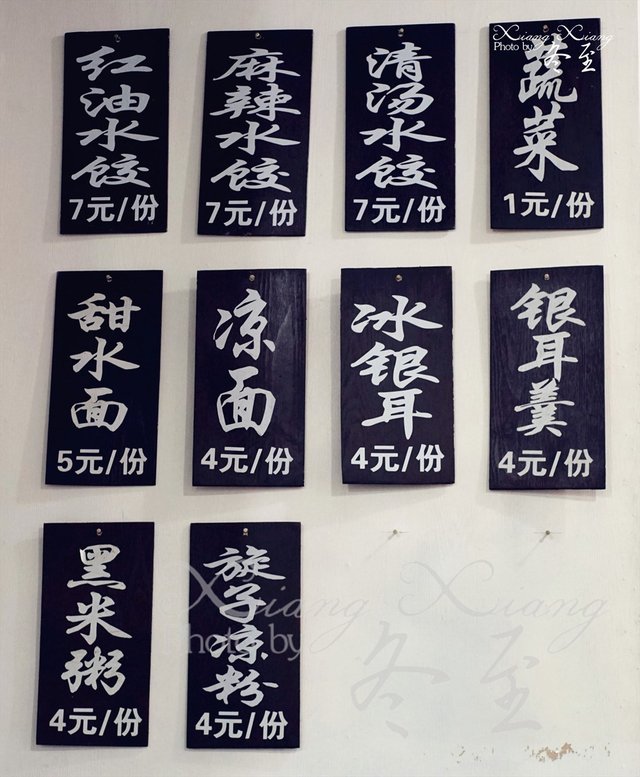 下午五点寻觅过来,虽然还没有真正到饭点时分,但是店里已经有了近七八成的上座率。店里的餐品就是传统的成都小食店的类目——红油水饺、银耳汤、甜水面、醉豆花、八宝粥、黑米粥、凉面等等。看似单一,但却纯正。随着时间的推移,这样的保留着传统餐品和营销模式的小店确实已经不多见了。现如今,为了招揽更多的客人,店家想方设法增加选择的品种,“宜宾燃面”居然还有盖浇饭,“绵阳米粉”居然有扬州炒饭……失去了自我的特色,反倒成了个不伦不类。