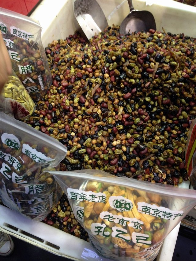 店里买了好几种干货,状元豆啊,腊八豆啊,蚕豆啊,豌豆啊之类的。