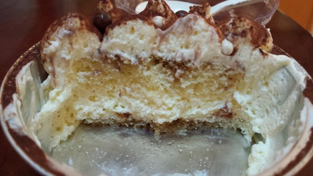 好大的一个提拉米苏,外形很亮眼,味道考拉不喜欢,过甜,多两口有点甜得发腻~原来应该还是不错的,奶油细腻,蛋糕部分一般~