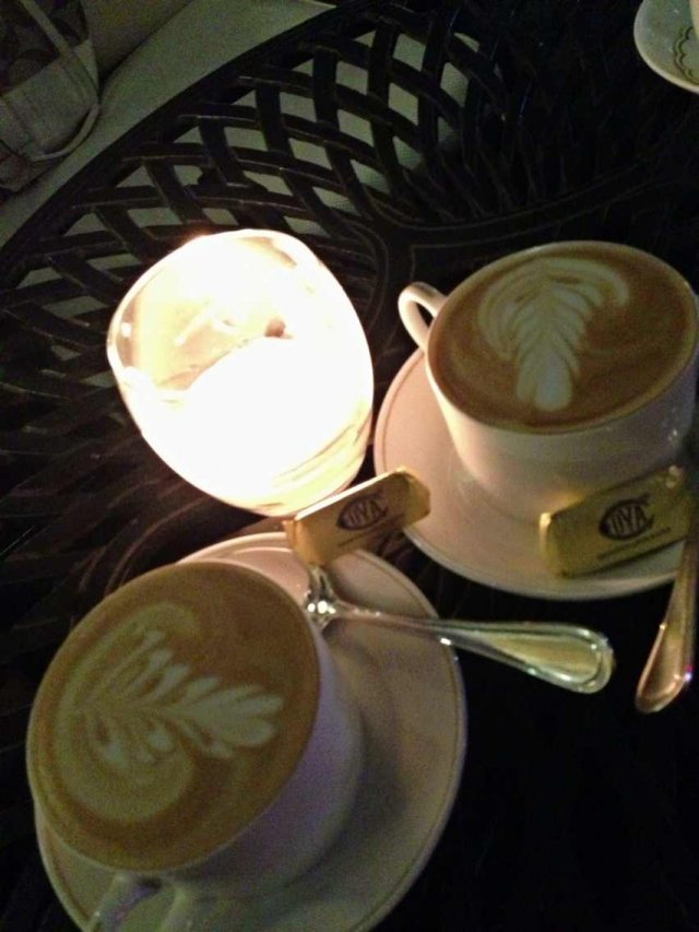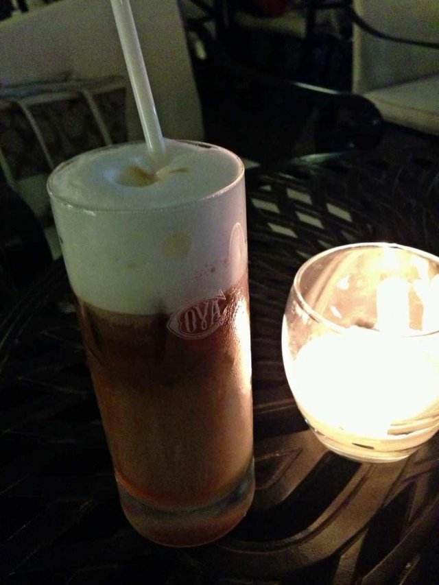 点的是cova的咖啡,基本是要75-80元一杯的。热咖啡的拉花很漂亮,不过说到拉花,也没有什么技术含量,外面的大部分咖啡馆也可以达到这个水平。至于咖啡的味道,你说要有多好也不见得。和对面的starbucks之类的大众咖啡馆也相差无几。冰咖啡上面厚厚一层奶泡。80元,好贵