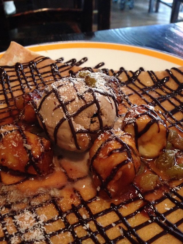 榛果巧克力饼:上来之前小哥会倒一小碗酒精大概朗姆酒?然后再点一把火,不过超级快就灭了TOT。。。巧克力冰淇淋味道蛮好,就是太甜。。。浓郁的巧克力~