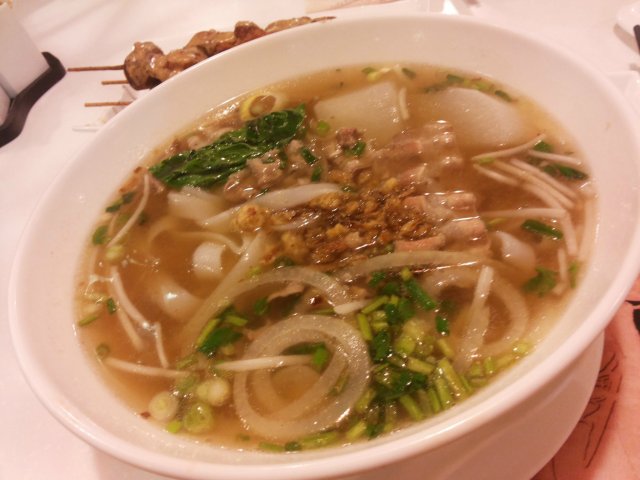 招牌生牛肉米粉,这是在逗我袄?这是生肉袄?明明熟了....不过我到无所谓了,反正我不爱吃生的,不过这去腥味的柠檬白瞎了,整个碗里面全都是熟的东西。。米粉没什么味道,太一般~豆芽给的少~我讨厌的洋葱给那么多呢-_,-不过那个汤我觉得还行,算不上美味吧,但是味道也不算差。