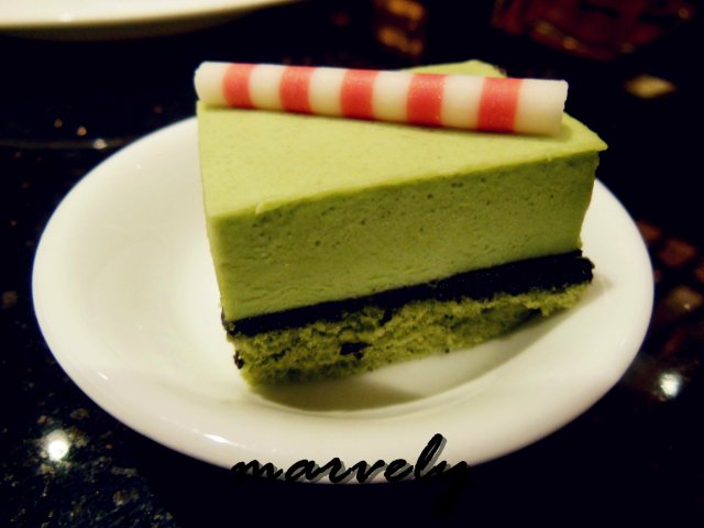 抹茶蛋糕,这个抹茶蛋糕挺有趣的,因为在抹茶慕斯和抹茶之间,并不是巧克力,而是黑芝麻酱,虽然我不是很喜欢这个黑芝麻酱的甜味,但是这样的做法,还是让我感觉挺新颖的。