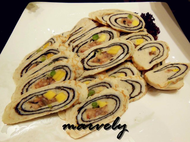 色拉区的食物也比较普通,其中甚至有一道纯黄瓜色拉,不过有道蛋卷色拉,可能是因为里面加入了玉米粒,再加上蛋卷皮的奶香味不多,所味道清甜可口。