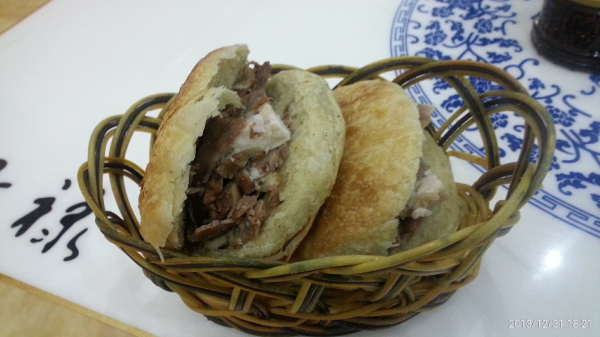 牛肉烧饼,烧饼没什么感觉,不怎么酥脆,好像是外面买的,应该不是现做的,牛肉很大块的,可以看到里面的粗粗的纤维,有肥瘦搭配~~