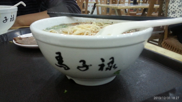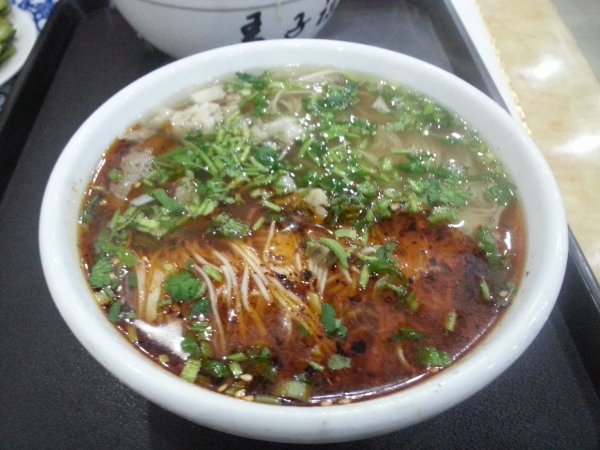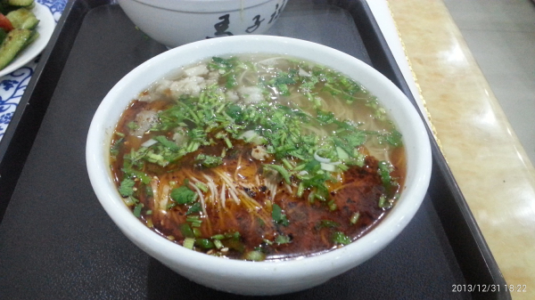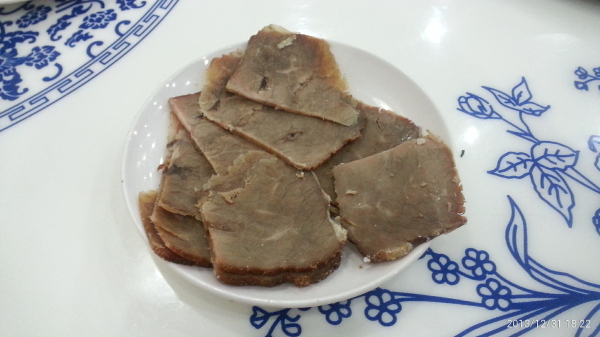 面条很劲道,汤头也和好喝,一开始没喝出味道,最后又要了一碗汤,能够尝出里面浓重的香料的味道,感觉熬了很长时间,牛肉切的很薄,但不是很多啊~~