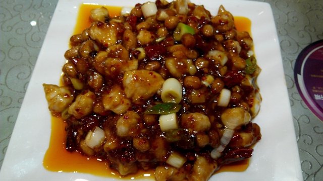 套餐都是辣的,不愧是川菜馆儿。宫爆鸡丁肥肉略多,算是微辣的菜了,下饭哦!油也大。