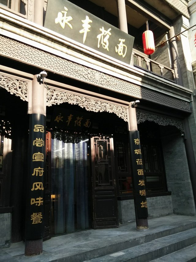 永丰莜面这家店以前来吃过一次,后来又来了一次,2次都是我们仨来吃的,其实就是想再去前门逛逛随便吃吃小吃的。这家店在前门的鲜鱼口里面,还算好找,门口有旗子,挺醒目的。里面不太大,环境还可以吧,服务嘛第一次感觉有个女的还不错,可是第二次就不行了,一般般。我们仨2次都点了莜面窝窝、猪肉蘑菇汤、羊肉串、卤煮和爆肚,第二次时候另外还又加了一份宫保鸡丁和一份熘肝尖。爆肚,他家爆肚是水的,味道太淡了,没什么香味,爆肚也有点老,2次都是这样。卤煮,做得还算不错,里面食材挺多的,肥肠和肺处理的都还不错,比较嫩,汤也挺好喝,咸度也可以,豆腐也挺软嫩的。羊肉串,这个是他家门口卖的,我记得10块钱一串吧,串挺大的,肉也挺厚的,吃起来还不错,挺香嫩的。莜面窝窝,蘸着蘑菇汤吃,其实如果蘸不完也可以直接喝掉,不过这个不是老北京的吃法,老北京就是蘸着吃,蘸不完就剩下。莜面窝窝黏黏的,还挺筋道的,蘸着的汤是猪肉蘑菇的,里面有蘑菇碎块和猪肉碎块,还算不错,不过还是有的油腻,好在就是蘸着吃。宫保鸡丁,鸡肉占一少半,还算嫩,没什么辣味,醋放的不少,有点酸酸的,花生米不是很脆,比较少,还有很多是葱段。熘肝尖,里面有木耳、黄瓜和猪肝,做得挺好吃的,没有买米饭,其实很下饭的,肝挺嫩的,没什么异味,木耳脆脆嫩嫩的,黄瓜很爽脆。
