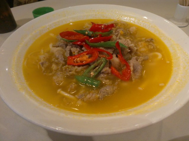 酸汤肥牛。这道菜,可谓是又酸又辣的。牛肉并不多,切片在上面平铺了一层,酸辣味盖住了牛肉原本的味道,普通了。牛肉片下面是一大碗的面条,我问服务员这个面条是鱼面吗,她回答是的,但是我觉得面条里面很明显的可以吃得出淀粉很多,不像是纯的鱼面,可是吃到最后几根鱼面,才有点鱼肉嫩嫩的口感了。