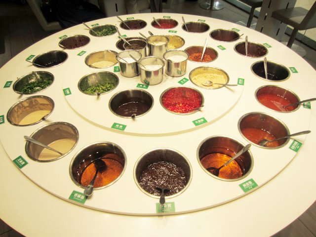 【自助调料】一人4,有个很大的圆形自助调料台,酱料的种类非常丰富。看着服务员都还对消耗的酱料做记录。