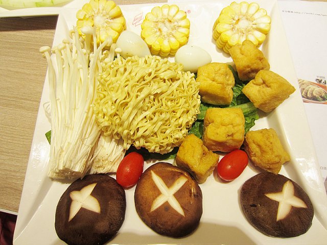 【什锦拼盘】15,内容有玉米,鹌鹑蛋,火锅面,油豆腐,金针菇。【油豆腐】就是炸豆腐,不好吃。【火锅面】就是方便面,也不好吃。其他的还行。