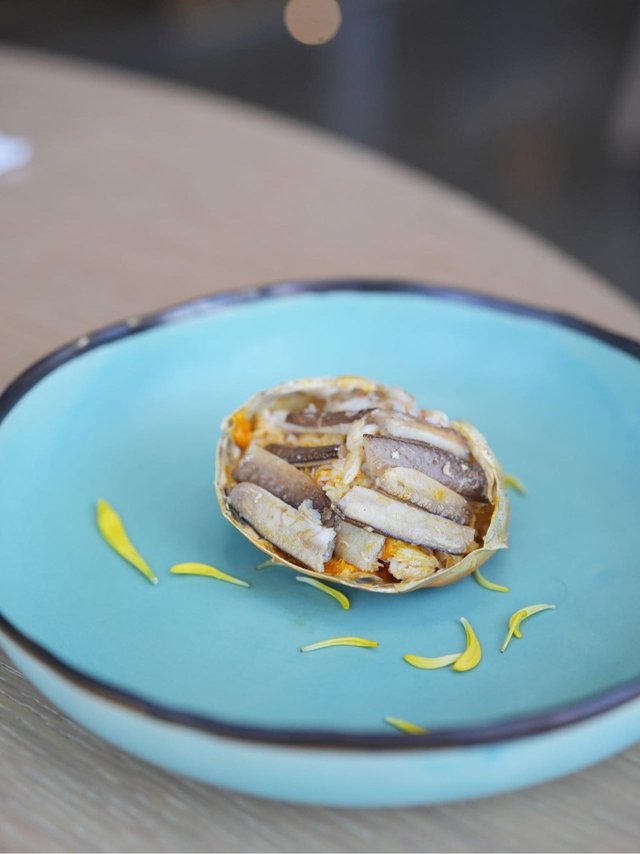 蟹肉跟飽滿,吃起來還有淡淡的清甜味道蟹黃和蟹膏鮮味很濃郁