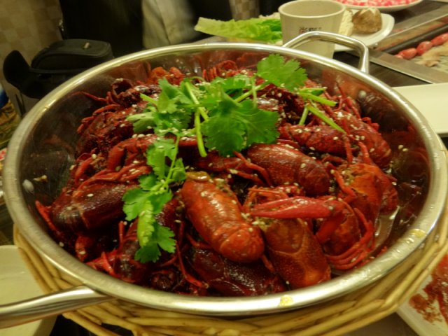 油焖大虾又麻又辣,但香味不够,不过总的来说味道还行吧!