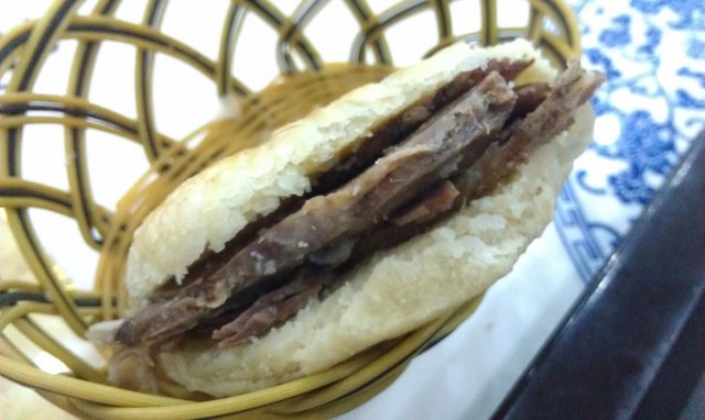 牛肉烧饼,6米。说好的芝麻呢?说好的又酥又脆现烤现卖的赶脚呢?我记得看别的亲发图,烧饼看起来灰常带感啊,我这个怎么就是市场卖的油酥烧饼,里面夹了薄薄几片肉就上来了。要不是确认自己去的是家连锁店,真心觉得是被山寨了好不好••••烧饼吃起来口感发死,面黏在一起的赶脚,不喜欢。