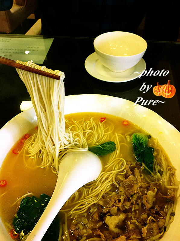 酸汤肥牛面特别好吃,很辣很过瘾, 汤头很鲜美,就是肥牛的量不算太多,里面还有一些绿豆芽。面条浸在里面鲜美无比啊。河马连呼好吃。和我一直抢着吃完了