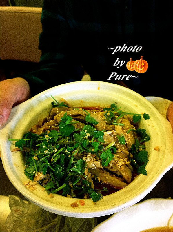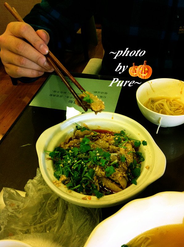 中午有套餐,不过我们对饭没什么兴趣,直接就想吃那个酸汤肥牛面。hippo说2个人吃不同的面吧。那么就另外点了个大肉面还有冷菜钵钵鸡。