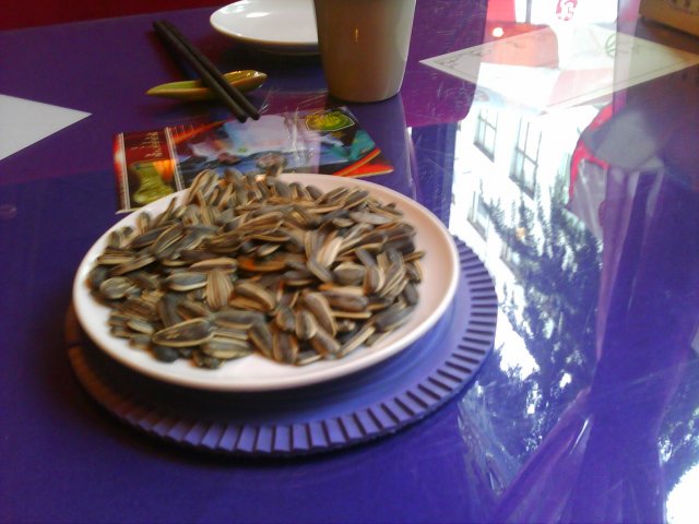 落座先上来小瓜子,这点比较满意,现在很多商家都能够做到。主要是在我等人的无聊时间里可以打发一下时光不至于太过于寂寞无趣。。。发贴的时候我才突然想起来,我们用了点评的优惠券,除了送虾以外还有小凉菜可以送,不过貌似被忘掉了。。。whatever。。。我对小凉菜一向没什么大兴趣。。。
