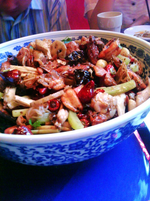 香锅在上桌的路上我就已经远远的问到香味了。上桌后厨师会再给加一些调味料然后翻几下就开吃了。吃完之后颇有些吃火锅的感觉,回到家里觉得浑身上下都是散不去的香锅味儿~