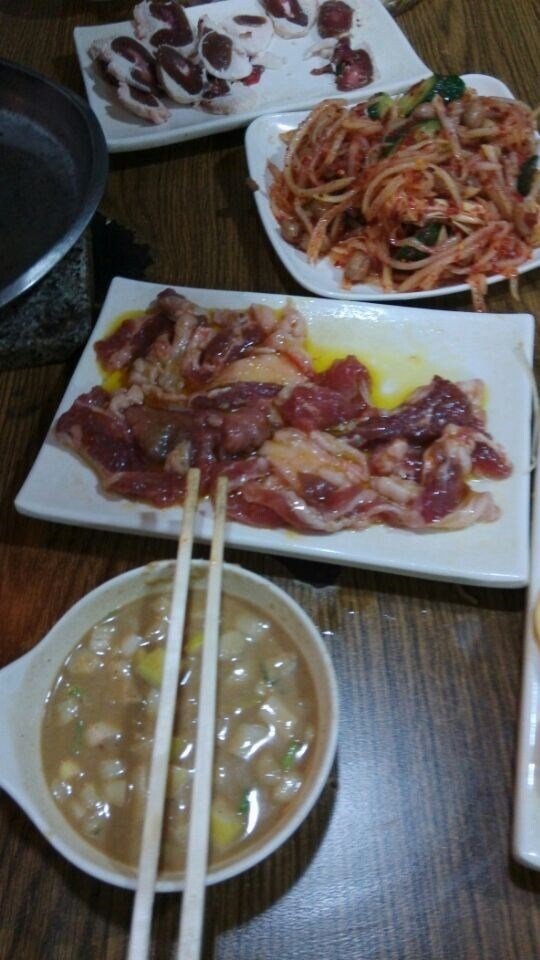 他家的人气还是比较火爆的,可能是由于店小,价格便宜,就感觉人很多的 样子。炉子很小,火很旺,吃起来火急火燎的样子,稍微动作慢点 肉就糊了 所以不适合人多光顾