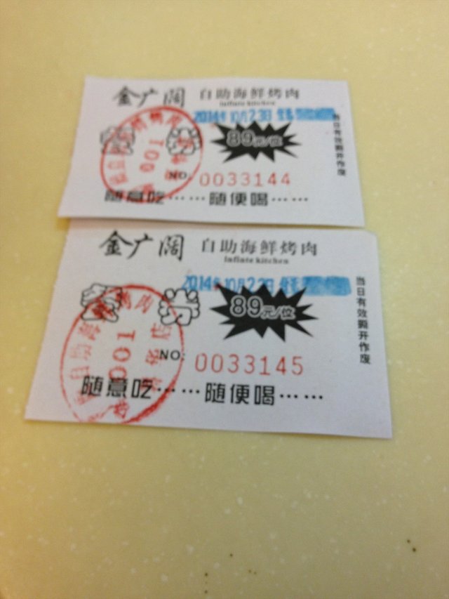 交了押金后,会发你两张票,交给用餐门口的工作人员后就可以进去了,