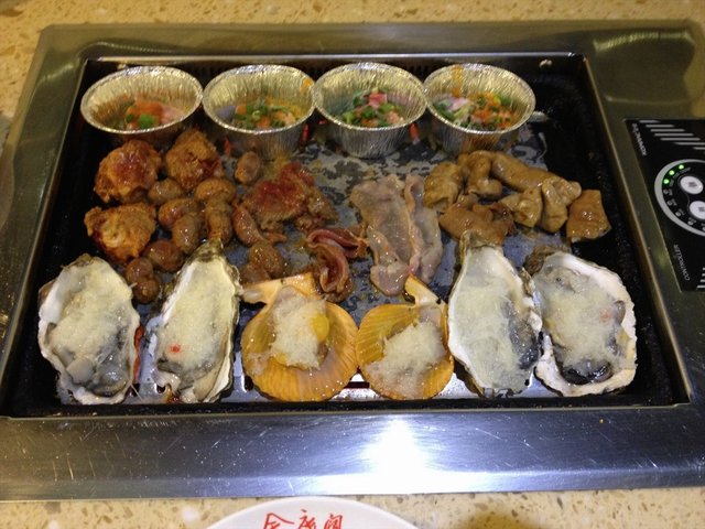 说下吃过的几种吧【扇贝】:上面夹了不少粉丝,扇贝肉不多,味道还可以。