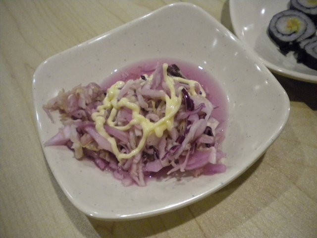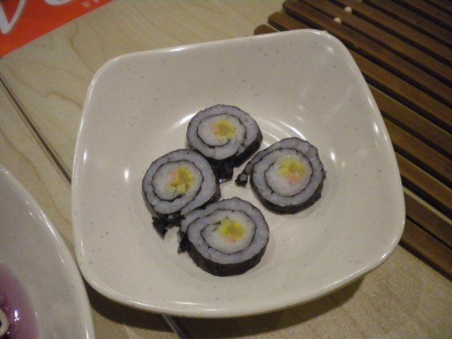 话说那七个小菜味道还不错,里面还有细卷寿司这样的东西,另外单上的南瓜粥有汉拿山的水准哦,非常细腻,我刚喝过,这个不会错的。
