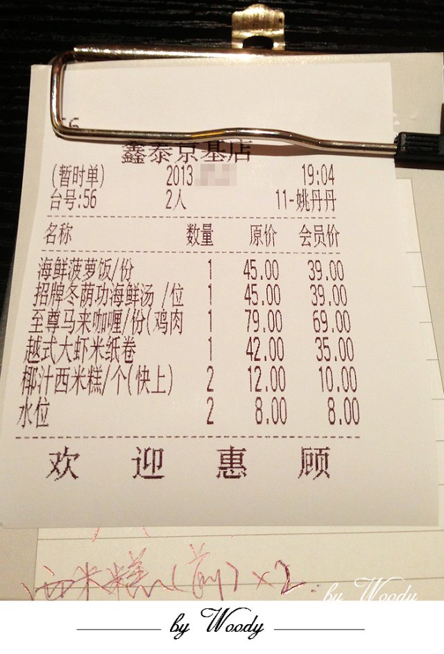 鑫泰 woody755等级42013-11-1359 浏览 关注 环境还行,东南亚装璜,但大堂的位置间距太近,跟拼桌吃饭似的。 还是圆桌的比较好坐。 服务一般,很多该优惠的地方,店员没有主动提醒客人。 海鲜饭不错,有些许肉松,却看不到海鲜,份量少了点。 冬荫功是唬没去过泰国的国内人,味不正。 咖喱鸡肉真心一般,鸡肉块少之又少。 纸卷太精致,味道也一般,印象不大。 椰汁糕还好,深圳的店普遍都是这种做法,朋友不喜欢。 用建行信用卡在周一有5折,划算不少。如果团购也比较优惠。 最好有会员卡,如果没带,可报手机号,不带会员卡就不能积分。以上食记乃用户个人意见 , 并不代表OpenRice之观点。赞好分享鑫泰 YES THAI鑫泰 (京基百纳空间) https://s.openrice.com/KtLT0W0Bb4800检举 张贴 评分3味道3环境2服务3卫生2抵食人均消费¥150 (晚餐)