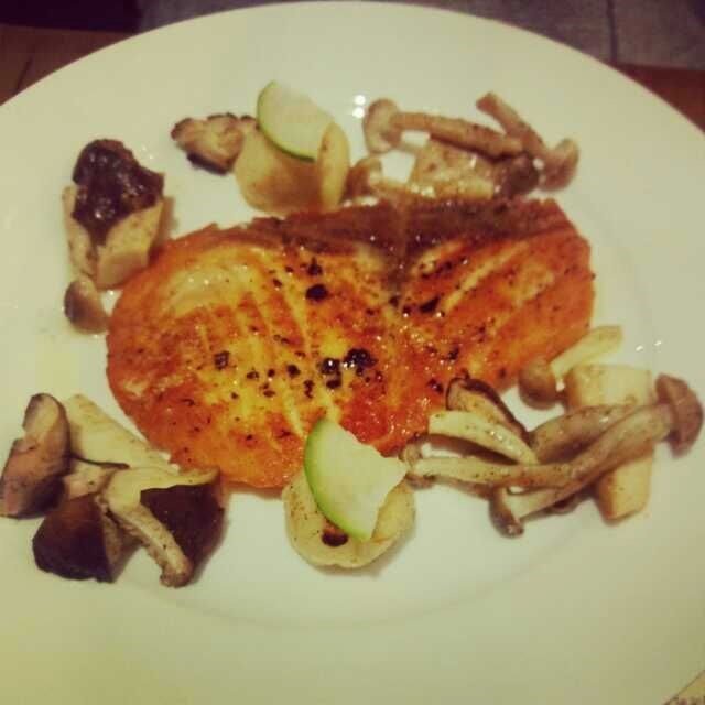 薯格的摆盘赞爆了,用菇类点缀,但是量太少,根本不够吃。双芝士火腿温泉披萨,当中的温泉蛋煮的刚刚好,就喜欢这种蛋黄流出来的口感。