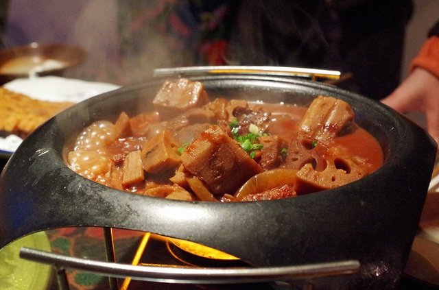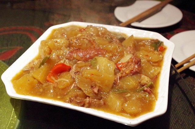 萝卜炖牛肉:绝对不是高压锅压出来的,而是细炖而成。萝卜和牛腩顿的非常软糯,萝卜和牛腩互相吸收彼此的汁水和香味。入口即化,相得益彰。
