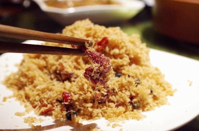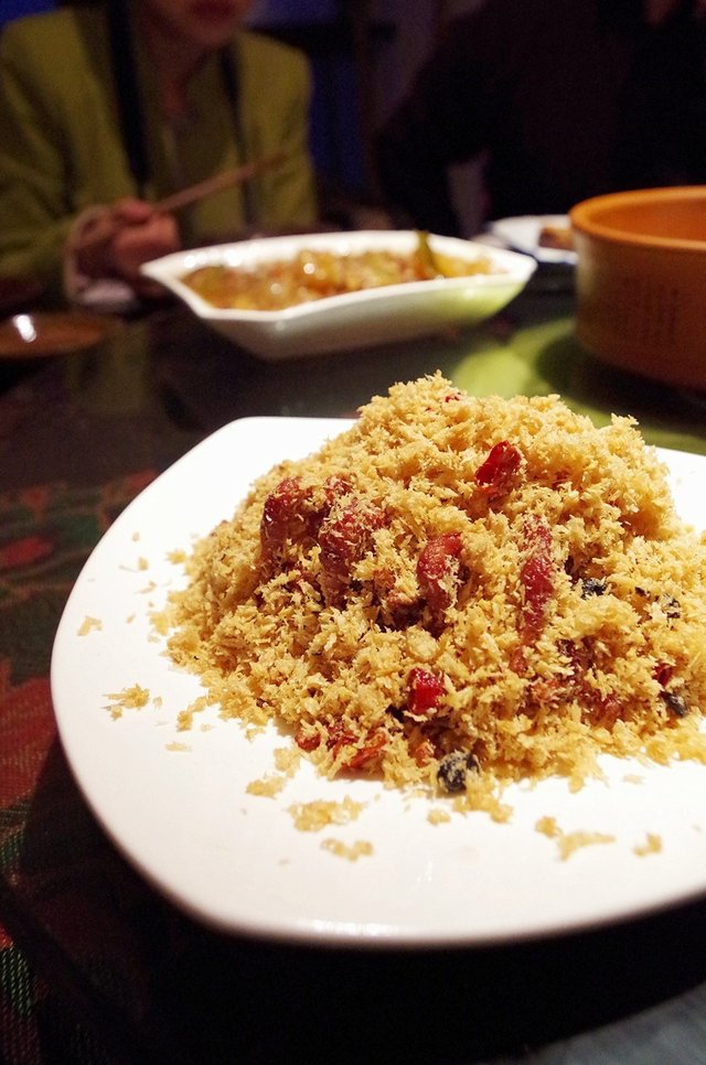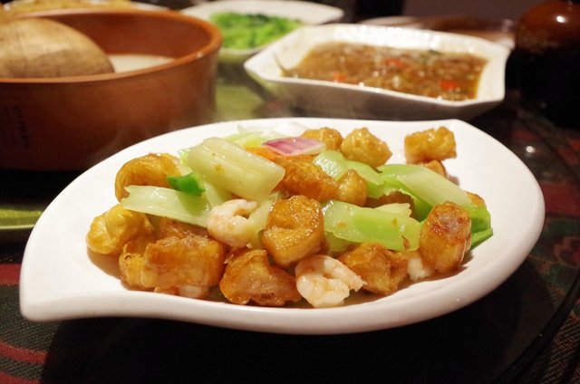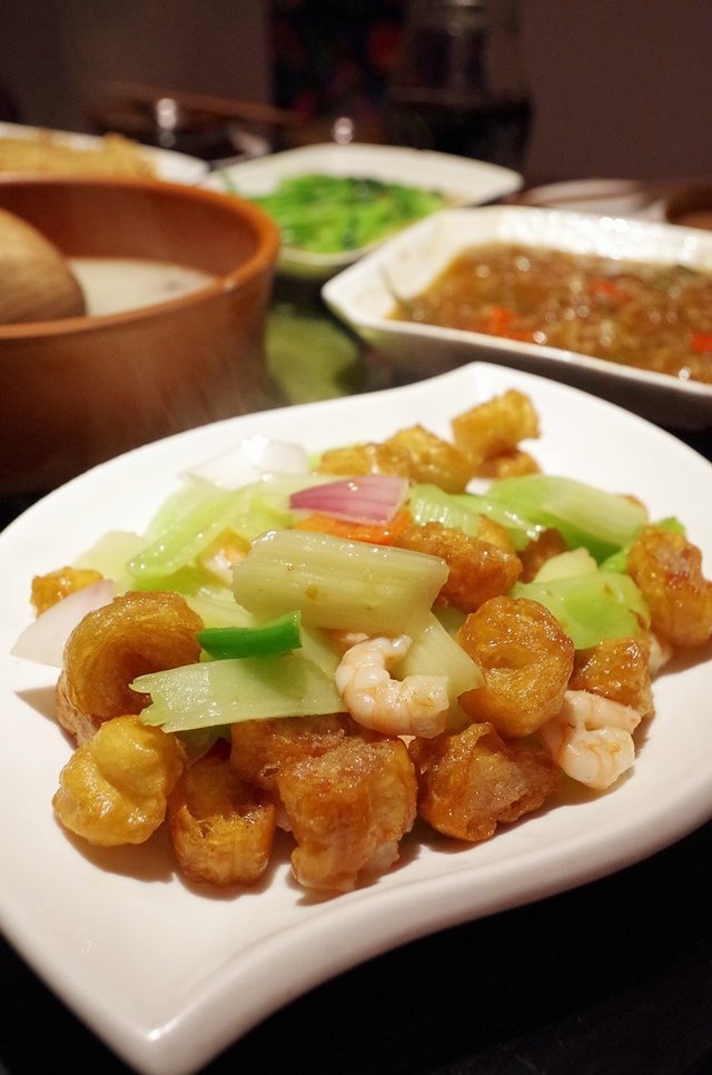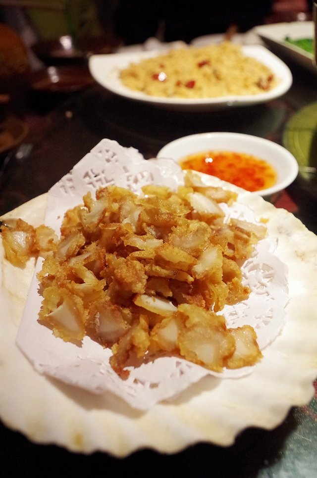 椒盐九肚鱼:话说我第一次吃九肚鱼还是在泰式火锅店里面。当时就惊奇于这个煮出来像果冻一样Q嫩的鱼肉。这次的九肚鱼是油炸,椒盐口味。这就是完美诠释外脆里嫩的一道菜了。