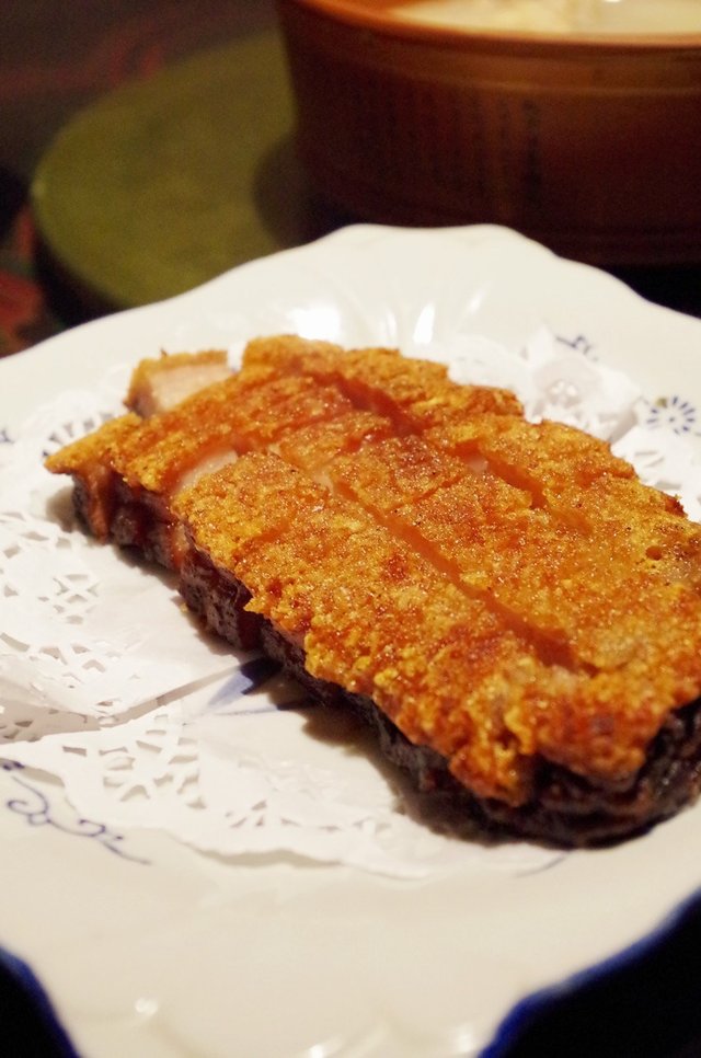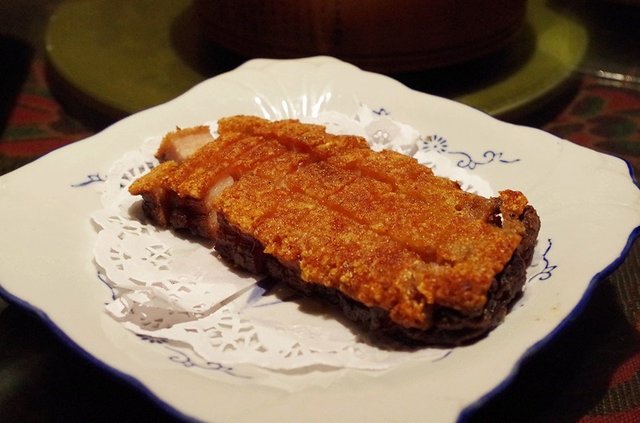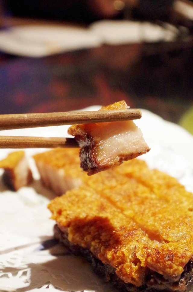 脆皮烤肉:烤肉绝对是阿狼的拿手手艺。这个猪肉烤的金黄香脆。油气已经被充分烤出所以不腻,上面的皮脆的来跟吃锅巴一样!口感独特。