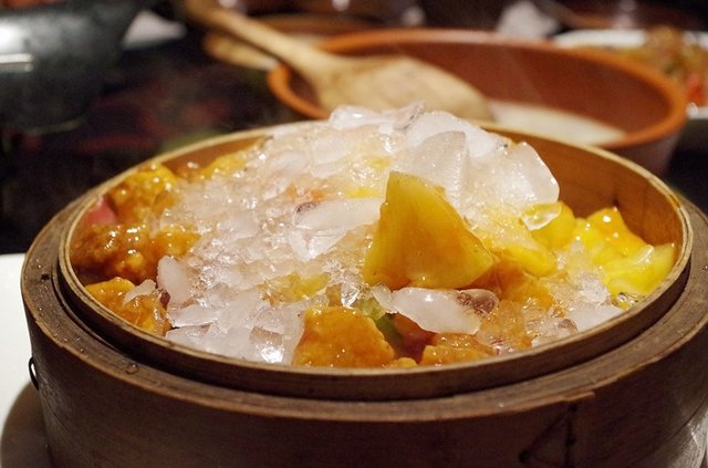 冰火两重天:来阿狼私房菜不得不吃的一道招牌。咸甜的咕咾肉一出锅就承装在铺满冰块的器皿内。冰与火,咸与甜。你会在这道菜里找到惊喜的平衡。