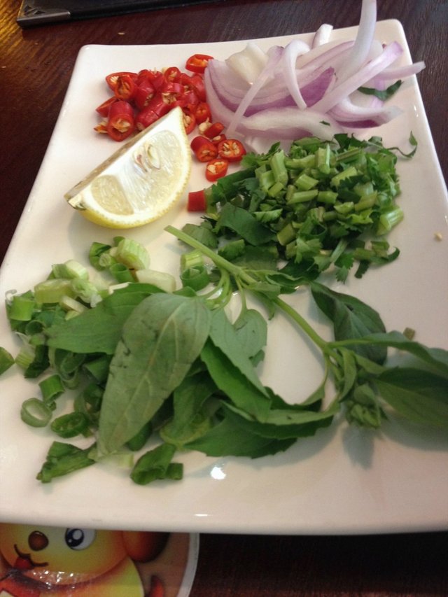 另外用一盘子放了些佐料,有洋葱,小米辣,柠檬之类的,