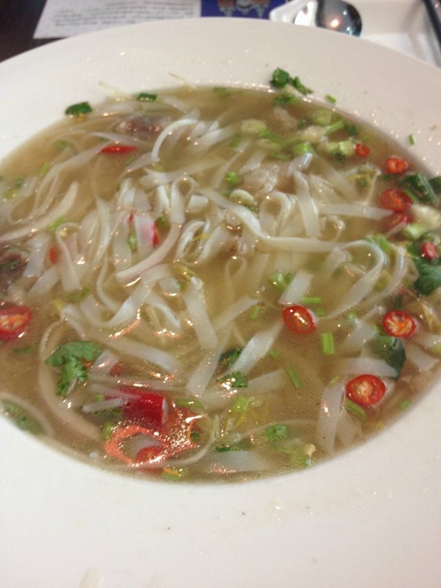 点的越南生牛肉粉,牛肉粉很大一碗,牛肉是用的肥牛,
