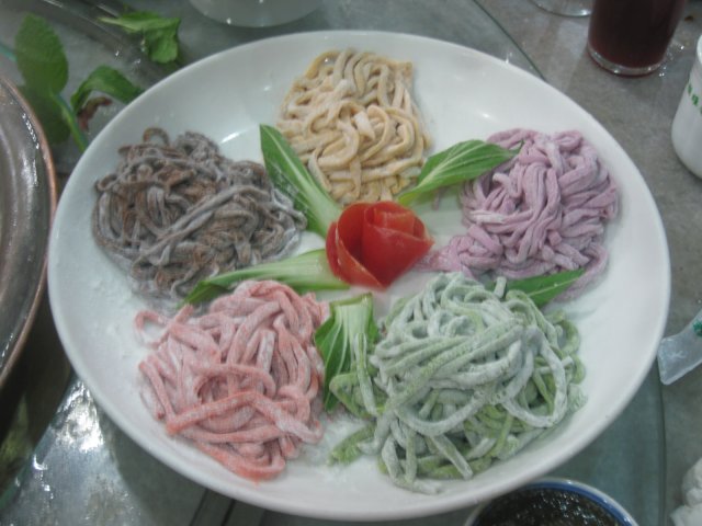 还有用五种天然植物或蔬菜染色而成的五色面,煞是好看。