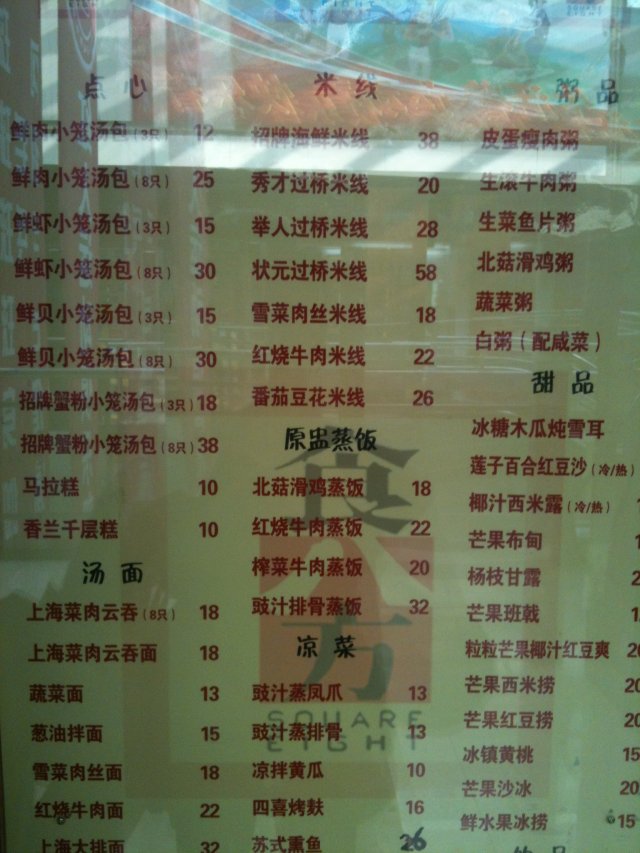 随便吃一顿饭 有米就败等级32013-02-2712 浏览 关注 去金源楼下的丽家宝贝给我家宝贝买点辅食,买完才想起来自己还没吃饭,所以上五楼看到他家广告牌上写的品种挺多的,便进来了。 这家店人也满多的呀,好在我去的时候还没排除。他家的点心有汤包,米线也有很多种,还有粥和面的。最主要的是,我想着吃完饭还能点点甜品。呵 本想要份他家招牌的蟹粉小笼汤包,可是说没有了,只好改点了传统的鲜肉小笼汤包,8只25元,还好不算太贵,就是包子有好几个都粘在屉上了,一提就漏的没汁了。要了份蔬菜粥10元,好像是贵了点,而且吃着觉得粥里像放了鸡精。一顿饭花了35元,包子没吃完,打包。呵~吃的太饱,甜品都没点就走了。呵 总的来说,随便吃一下是可以的,但别抱太大希望。以上食记乃用户个人意见 , 并不代表OpenRice之观点。赞好分享随便吃一顿饭 食八方(金源店) https://s.openrice.com/KtLT1m0wsy200检举 张贴 评分3味道4环境4服务4卫生3抵食人均消费¥35