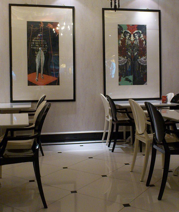 我们就餐的区域,这里环境还不错,桌椅和距离比较大一些。墙上的壁画很抽象的味道。