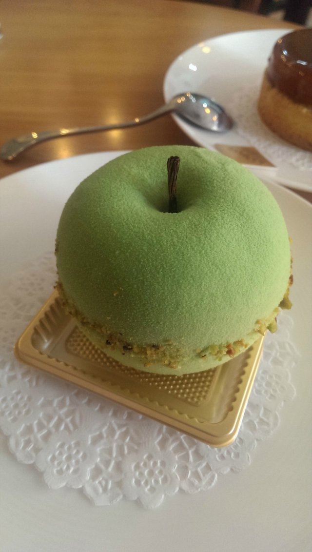 微博上无意中刷到这家店的推荐,被青苹果所吸引,于是果断@小伙伴,然后就有了两个人一拍即合专门的一次探店。平时基本上不会去龙湖三千集那边,不过巴巴家的地标还是很显眼,走到龙湖三千集,然后就远远瞧见了哈尔滨银行,所以找路方面还是很顺利的~~原本以为巴巴家是一个装修较为隐私的小资甜品店,没想到还是个开放式的大店面。最里面是座位区,外边是现烤蛋糕的货架,甜品摆在收银台处的玻璃柜里。去的时候就跟小伙伴开玩笑,如果青苹果木有了肿么办??还好最后一个留给了我们,不过大家都推荐的歌剧院卖完了,剩下的甜品品种也没什么了,无奈之下选了焦糖雪梨塔。【青苹果】28元。造型方面完胜,小巧可爱的一抹绿色看起来就很有诱惑力。这款甜品的制作层次也很细致,最外边是慕斯层,上层的口感偏甜,下层偏酸。所以整体的口感就是酸酸甜甜的青苹果好滋味,也果然很应主题。慕斯里面包裹的是柠檬口味的蛋糕层,单独舀来吃的话超级酸~【焦糖雪梨塔】28元。买的时候就问了店员这款会不会很甜,答曰有点甜,但不是店里面最甜的一款。因为实在也木有其他选择,所以还是要了这款,结果真的是很甜很腻~~~~最上面的焦糖就是一股甜腻,下面的饼干酥塔也偏甜,里面又还包着甜甜的雪梨片~~~还好我们点了青苹果,酸甜综合着一起吃,也就过的去。小伙伴还点了一款特饮,味道也很普通。本来我们是想尝尝莫吉托的,不过木有材料了。给青苹果赞一个吧~