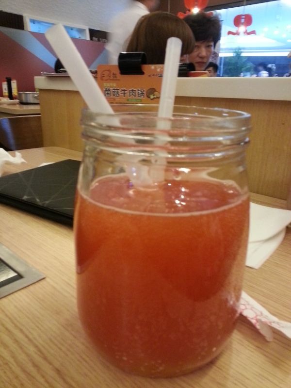 饮料是华旗果茶,这个倒是很应景,挺开胃的,一大瓶两个人喝没问题,大瓶子看着真敞亮