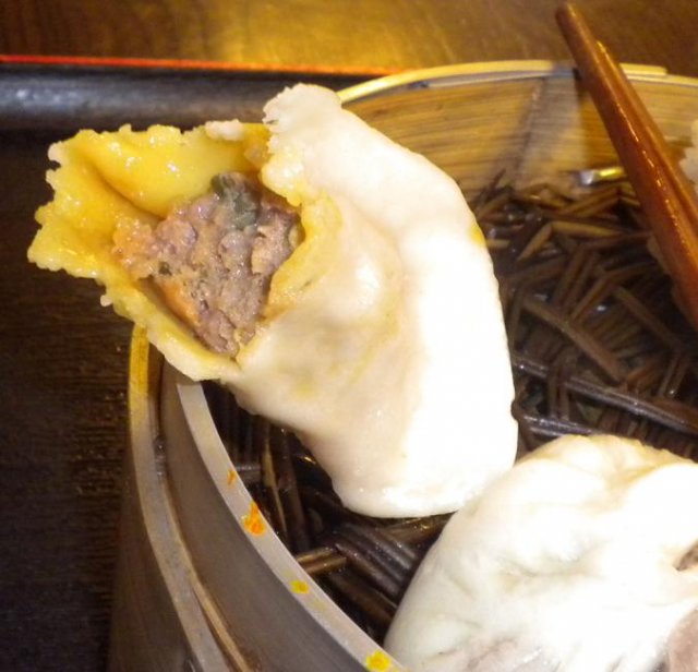 左上,蒸饺,肉馅大而实,微甜口,肉质紧实,很好吃;