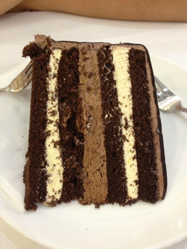 一直都很喜欢食之秘这家蛋糕店,蛋糕品种很多各种口味的都有,而且味道特别的赞,基本路过这家店的连锁店都会打包一块蛋糕回家吃。这家店在地铁2号线南京东路站出口的宏伊广场的地下1层,地方很好找,门口就能看到这家店。服务员蛮热情的,而且柜台上切好的蛋糕品种很多,选了块浓情巧克力价格23元,天太热没法带走只能堂吃了。蛋糕块头很大,巧克力的味道很浓郁,入口即化特别的赞,里面的巧克力味奶油和香草奶油一点都不油腻,配着巧克力蛋糕,口感真心的赞,不是很甜很好吃。2个人来这里吃块蛋糕足够了,他们家店还有饮料可以点,品种也很多,下次可以去尝试下。总的来说这家店蛮适合吃吃下午茶的,就是店面有点小,堂吃的地方也就3桌,人多就不行了。