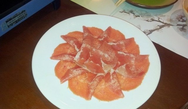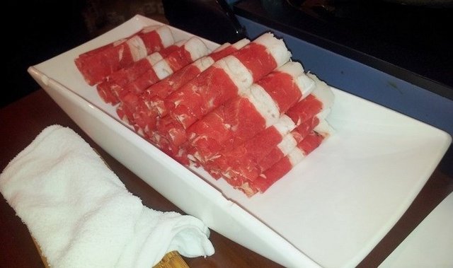 有个重口味的锅一定要配个清淡的锅平衡一下啦~他们家的肉品中不像牧场那么单一只有三种~倒是很象御香海那样,除了肥牛外还有啤酒牛肉,牛舌,牛肉刺身,啤酒牛肉。。。年糕木有御香海的好吃