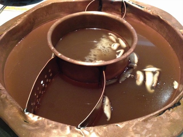 菌类拼盘:一小盘68,价格不菲,而且量不是很多。给下到中间的一个圆的小锅里面。会给你计时器,只要计时器一响,就可以吃蘑菇喝汤了。蘑菇种类有6种,也没太记住有什么。等吃的时候就更分不清什么是什么了。