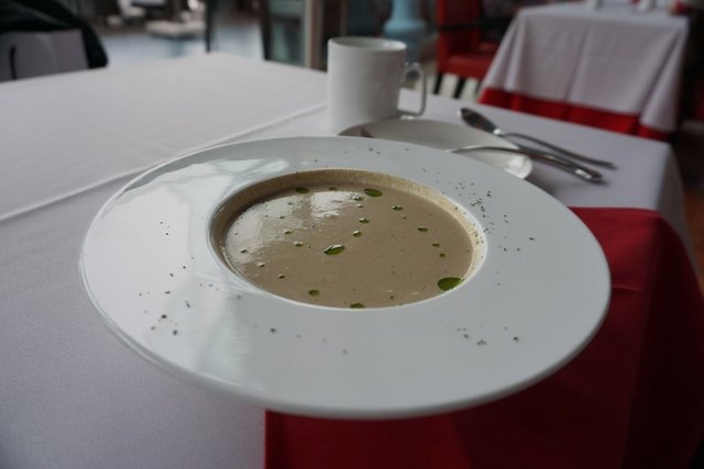 【蘑菇汤】要的是热的蘑菇汤,蘑菇的味道虽然我不爱。但是暖暖的一盘汤喝下去很舒服。蘑菇味道浓郁 主食各选一