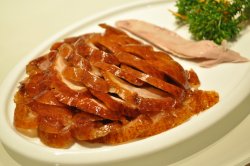 采用真正的果木烤制,光看色泽金黄油亮的外皮就已垂诞三尺。吃上一口,唔。。皮非常酥脆油而不腻,肉嫩滑多汁没有一丝腥气,沾上甜面酱,包上特别的弹滑面饼和配菜,怎一个“满足”了!