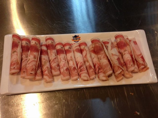 要了一份肥牛,一份羊肉。师傅现从冰箱里面拿出来的,现切然后装盘的。我觉得吃这个肉肉感觉还是多好吃的。还是很好吃的。