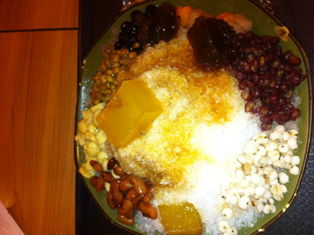 同事请我吃的,他怕排队,所以选择了长江日报路的鲜芋仙,因为那里吃的人比较少,,一直都只晓得江汉路的这家店,从来都不晓得,长江日报路这里还有一家,这里的店,感觉比快乐站台下面的那个要小些,但是感觉比那个看起来精致些,而且人少不用排队哦,,去的时候里面有几桌客人在吃了,我点了一个鲜芋仙霸王冰,,20块钱, 很快就好了,一端上来真是很大一碗啊,,红豆,芋元,仙草。绿豆还有其他的配料。真的是很好吃,,冰也很多,,吃到口里,有股黑糖的味道,,冰很细腻,爽滑,红豆,仙草很好吃,口感好,芋元,绿豆,分量也很多,配合在一起很不错,而且20块钱超值的哦,大热天吃,超级舒服,可以清凉一夏哦 而且他们家的服务很好,餐厅卫生也很干净,价格也不高,以后有机会,还要尝尝别的美食···