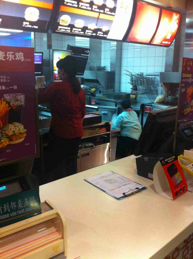 这家在麦当劳里面算是相当拥挤的,而且有很多站位,也就是让顾客站着吃饭的小桌子
