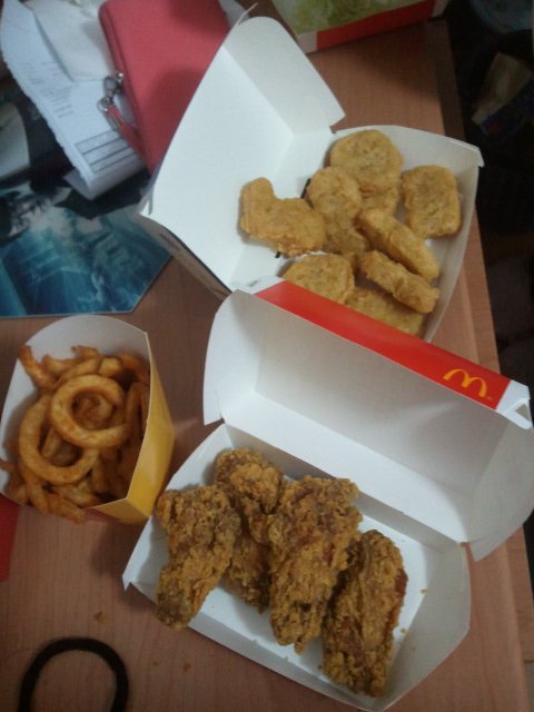 麦当劳 吃货小分队一一等级42014-01-085 瀏覽 關注 半夜11点肚子饿了,叫了M的送餐热线,半小时不到就送到了。扭扭薯条超级好吃,量很足,炸的脆脆的,非常香。香辣鸡翅很大只,外皮脆脆里面很嫩,辣辣的吃的很爽。麦乐鸡裹的面粉偏多了点,吃口不够嫩。不知道是本身没酱料的还是忘记送了,不蘸酱总归觉得缺了点撒。以上食評乃用戶個人意見 , 並不代表OpenRice之觀點。讚好分享麦当劳 麦当劳 https://s.openrice.com/KtLT100iJu900檢舉 尽是蓝调 麦乐鸡好吃!真的,我很喜欢。2014-01-09 回覆 吃货小分队一一 有酱料么?2014-01-09 張貼 評分4味道4環境4服務4衛生4抵食